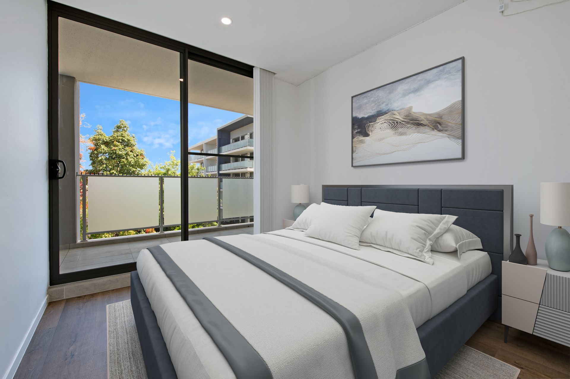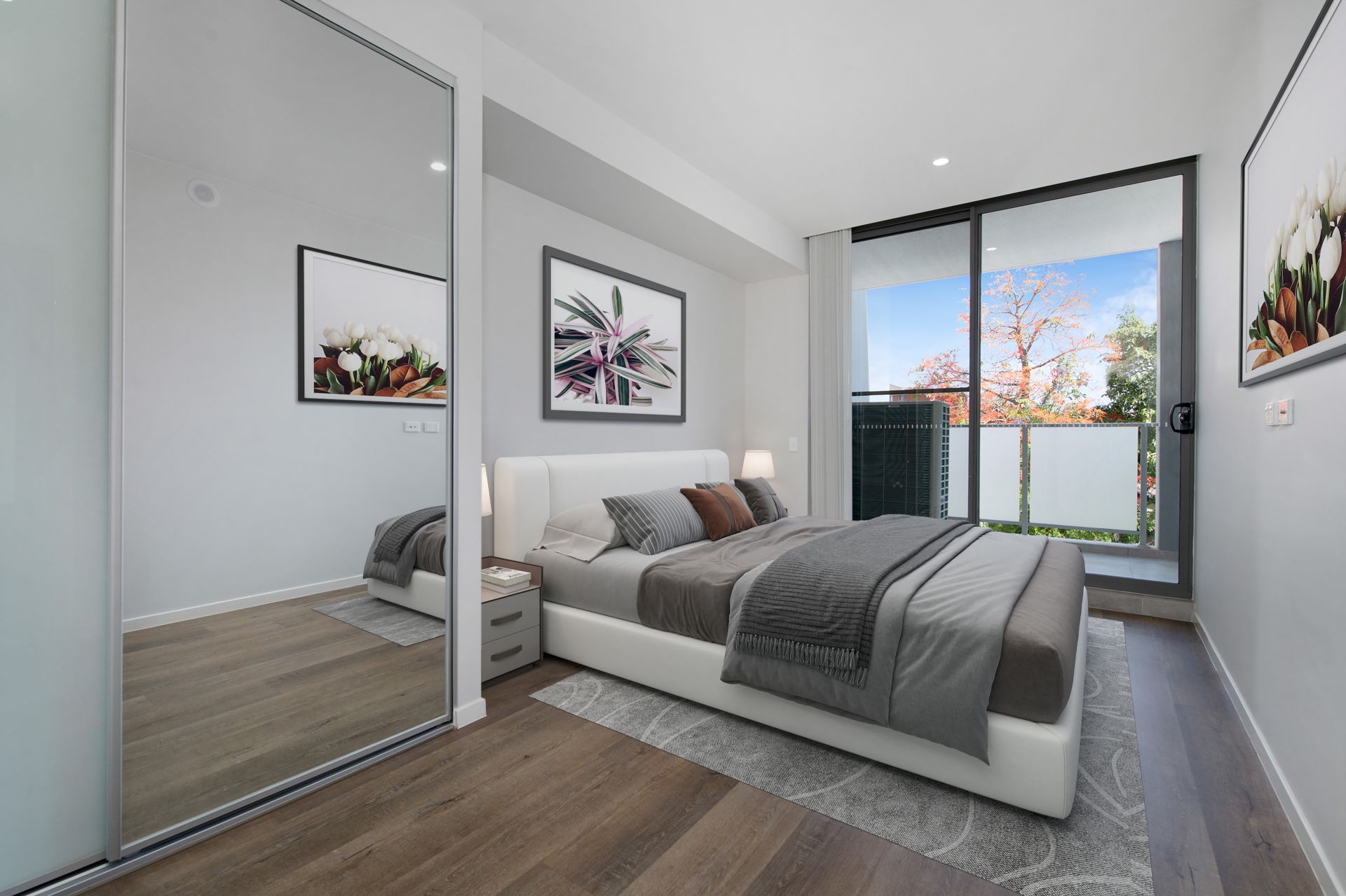 • Three bedrooms with built-in wardrobes, all with access to balcony, ensuite to master bedroom