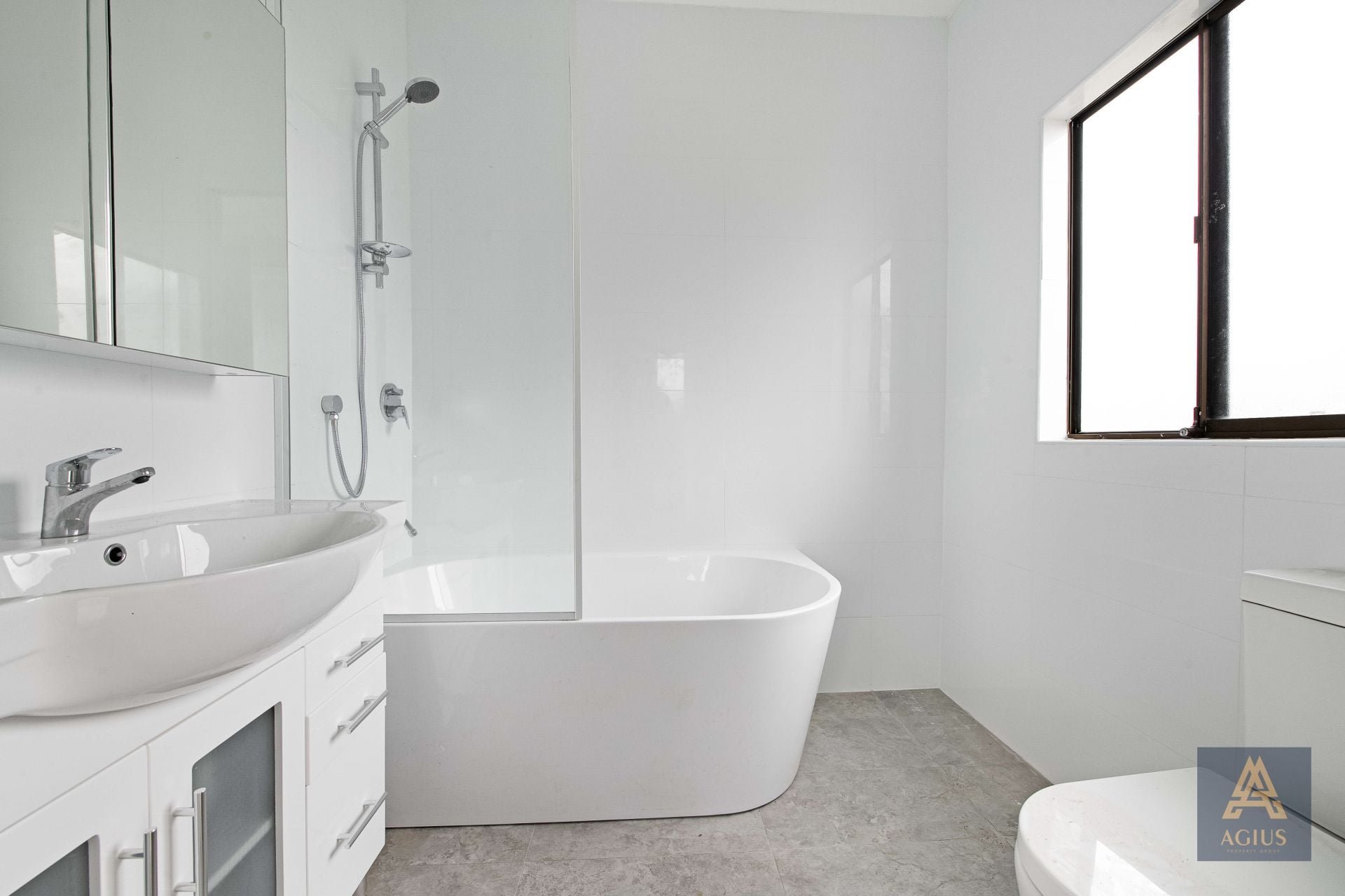 • Modern brand new bathroom with separate shower and bath