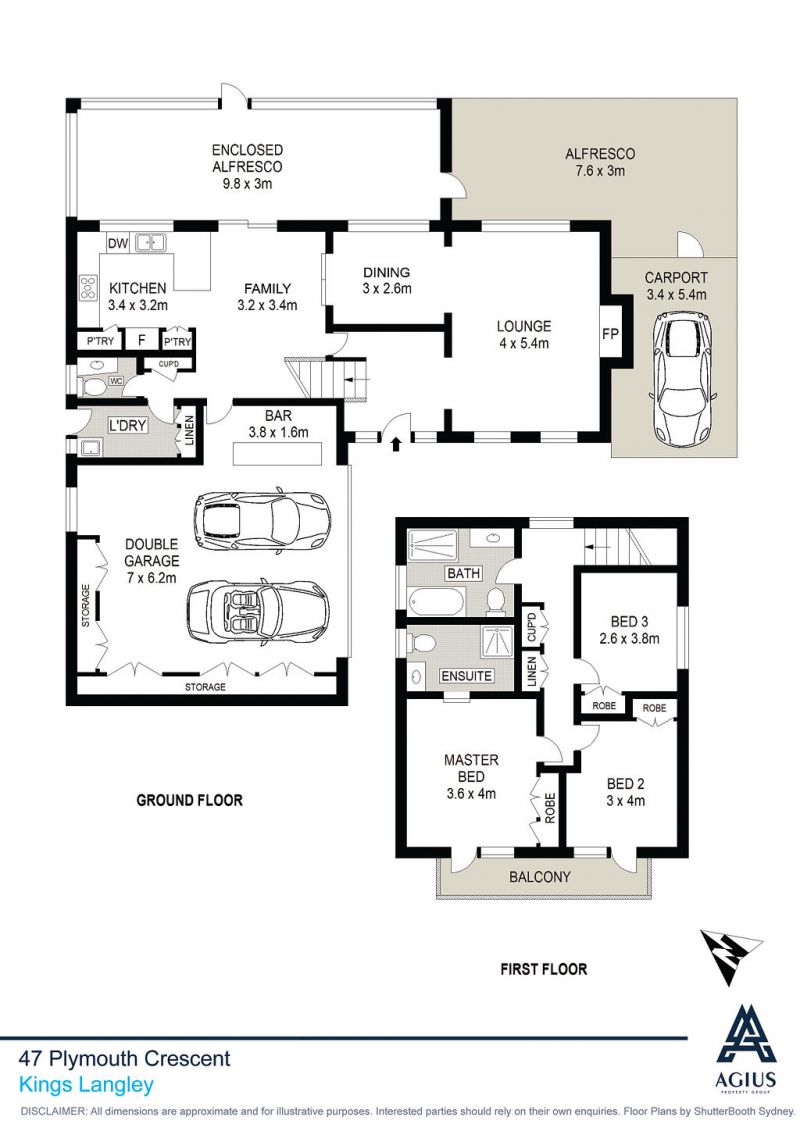 • Additional features: Ducted air conditioning upstairs and split air conditioning downstairs bar in garage, wide side access, Colourbond fencing, downlights, bedroom ceiling fans