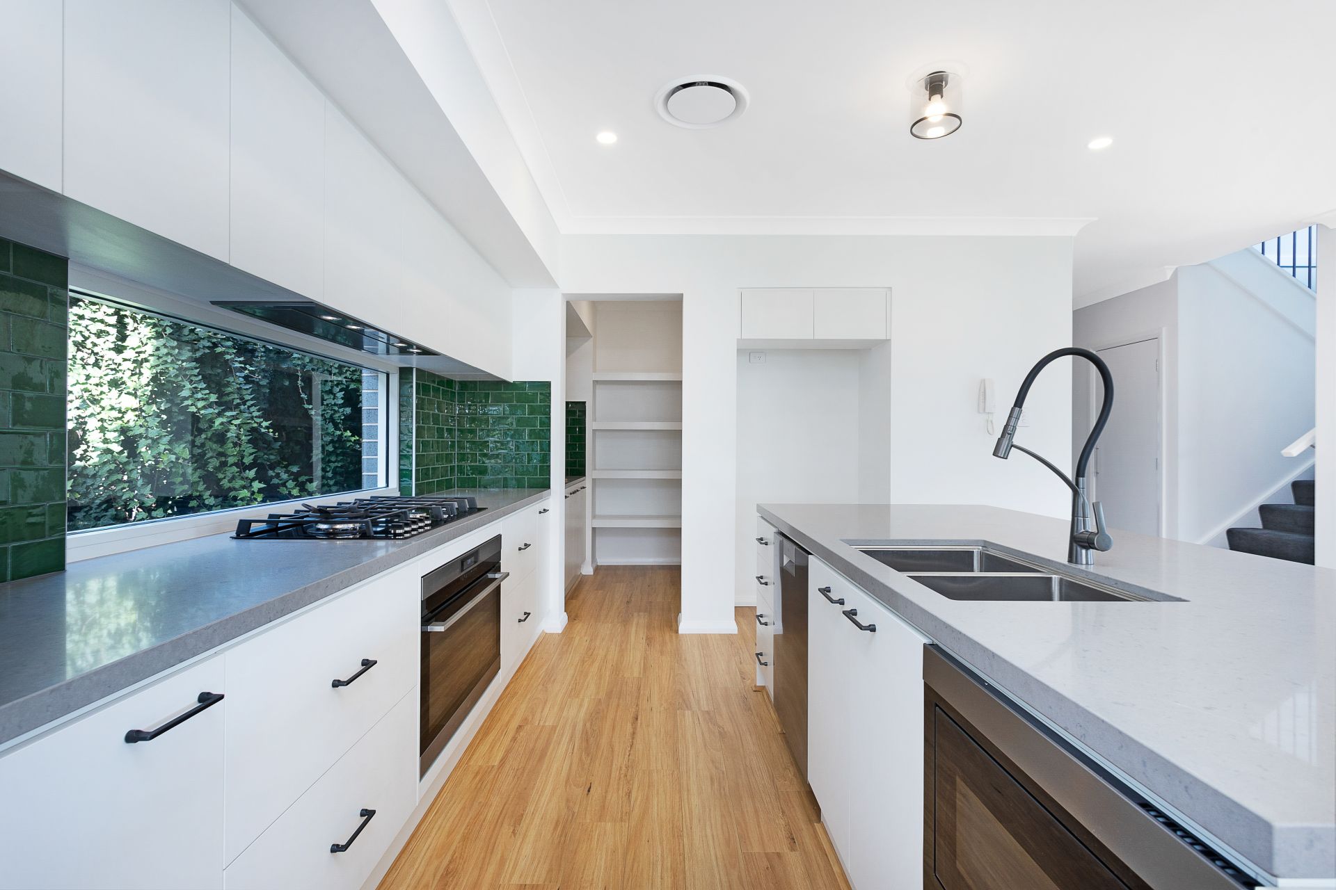 • Modern, light-filled gas kitchen with butler's pantry, stone benchtops, stainless-steel appliances, breakfast bar, window splashback, extensive preparation space and abundant storage