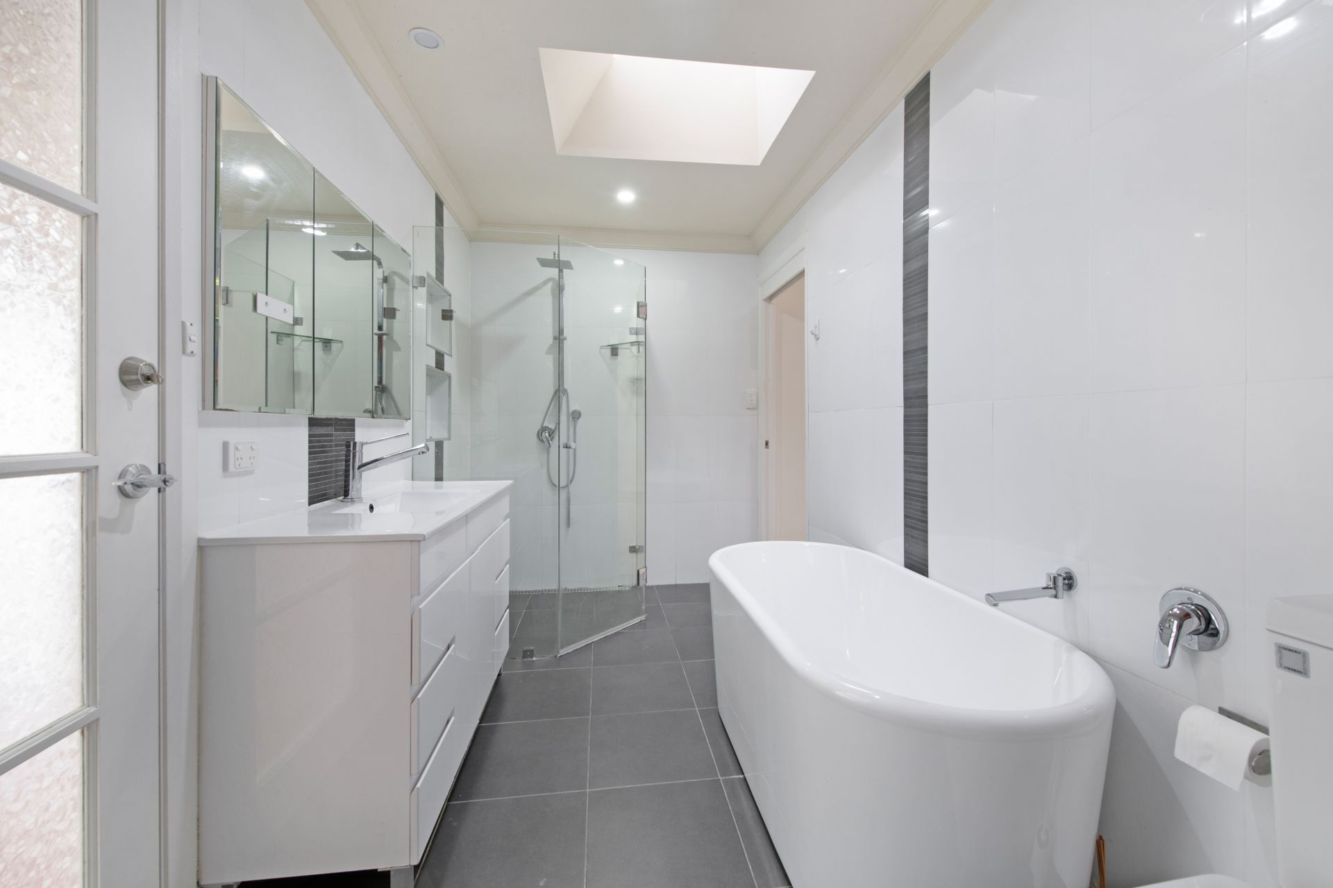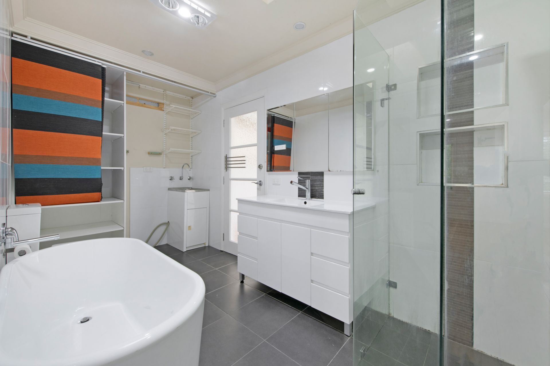 • Large combined bathroom and laundry, with separate, deep bath and frameless shower
