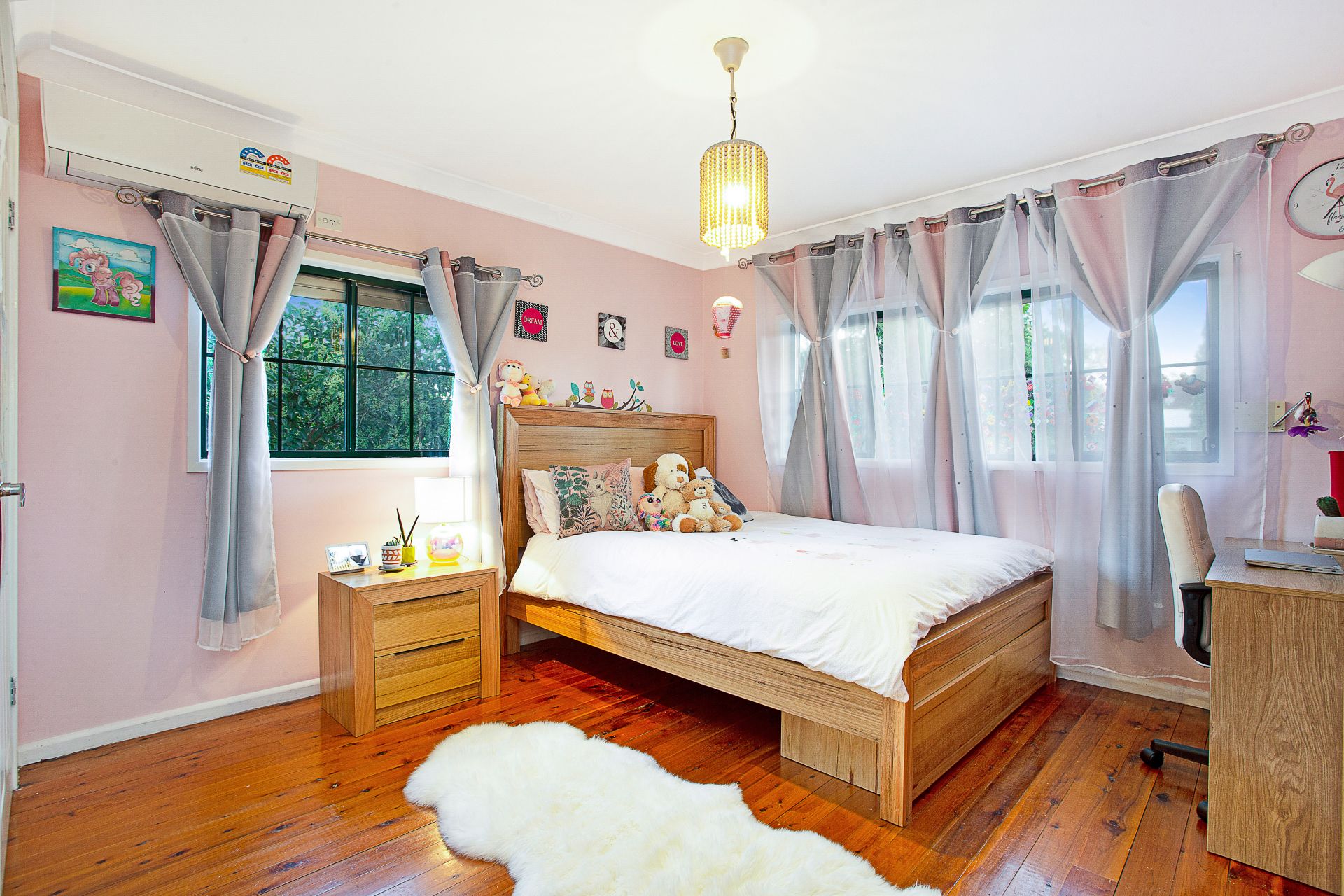 • Additional extras: reverse-cycle air-conditioning in two bedrooms, split-system air-conditioning in living areas, downlights throughout, video intercom, electric front gate, alarm system, garden shed, polished timber flooring throughout