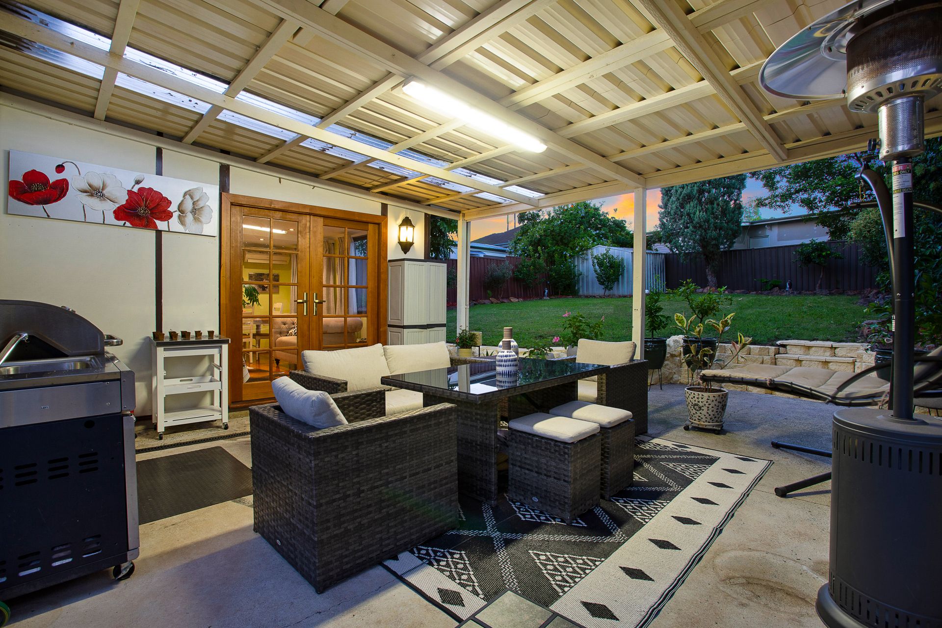 • Splendid undercover deck with built-in barbecue, all overlooking a roomy backyard for the kids and pets