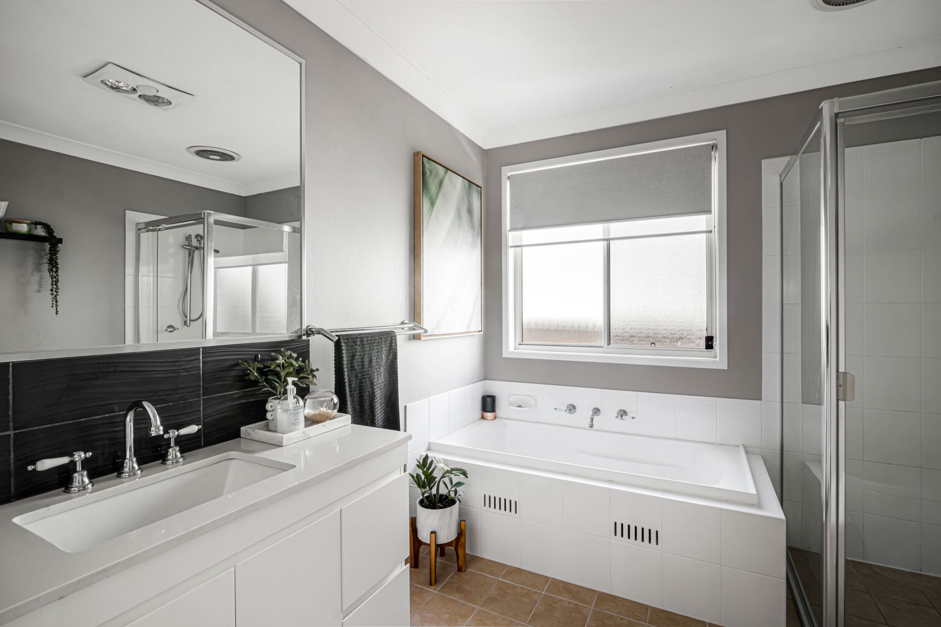 - Attractive contemporary family bathroom with separate bath and shower
