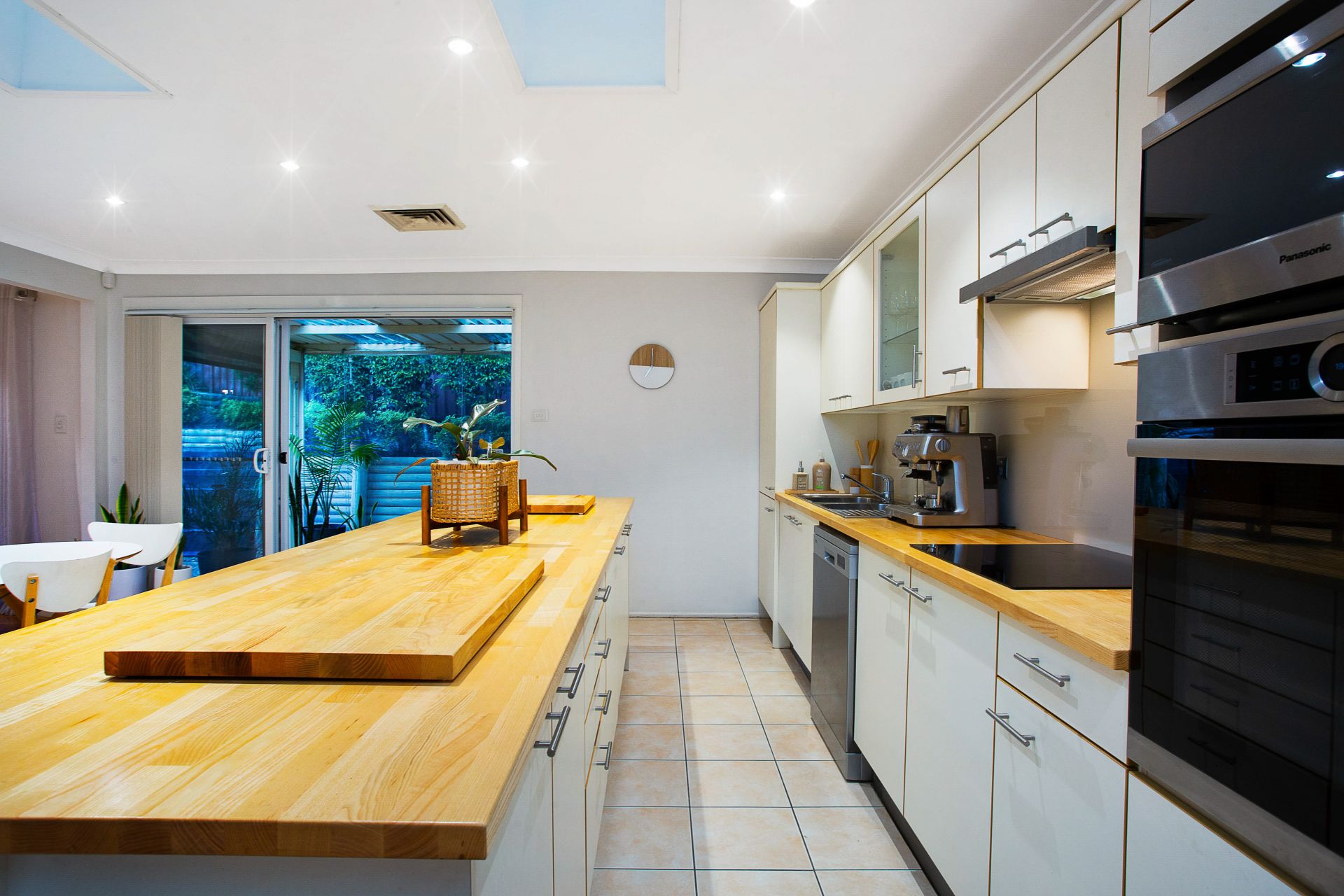 • Roomy kitchen featuring an island bench, expansive European Ash benchtop, breakfast bar, stainless-steel appliances and abundant preparation and storage space