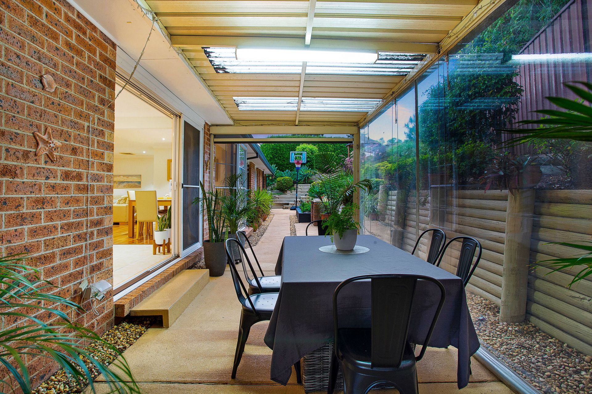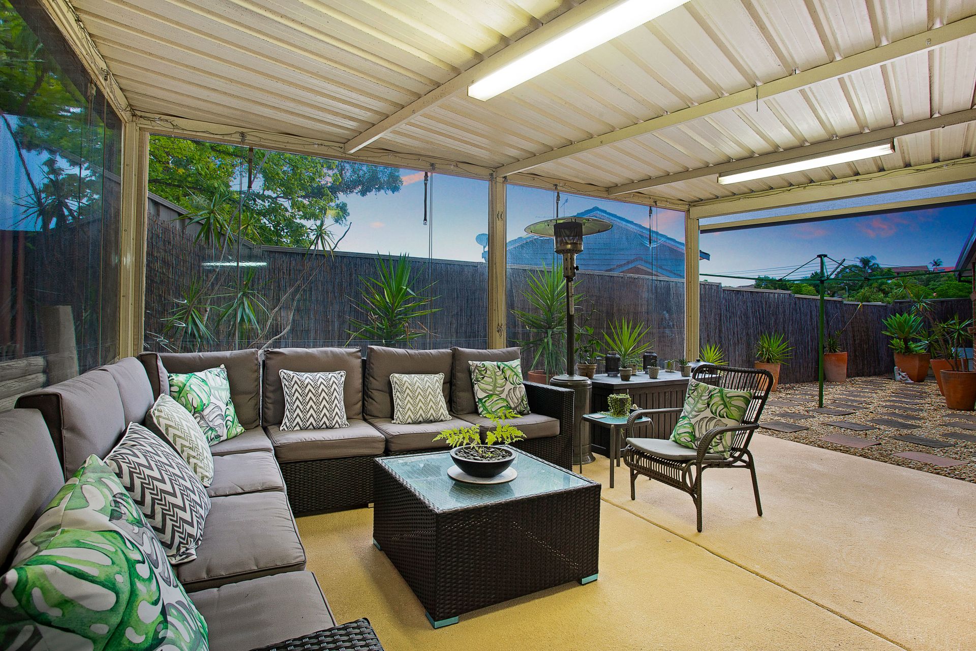 • Expansive covered wrap-around entertaining area with bistro blinds and TV connection