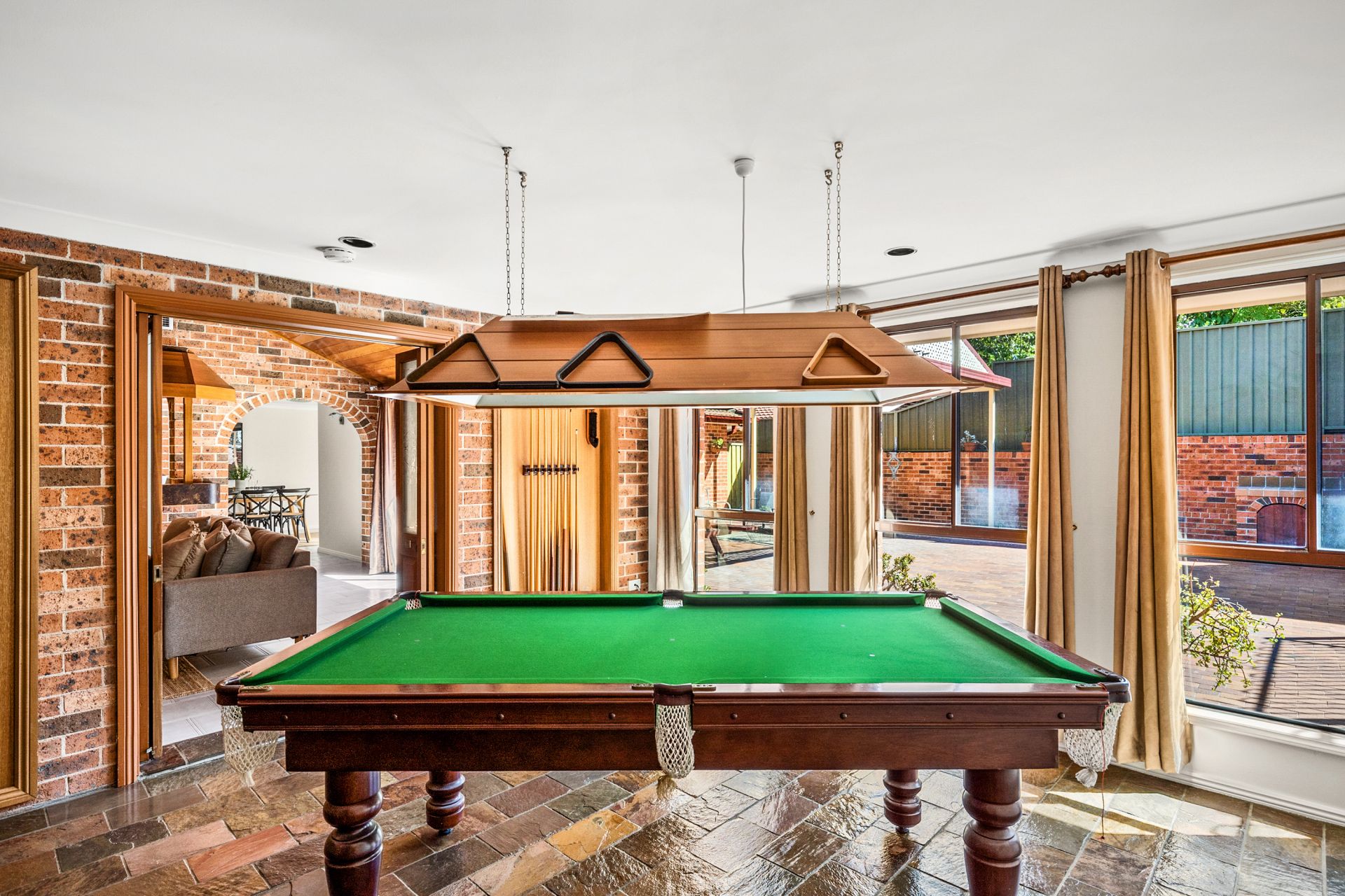 • Extensive pitched and paved covered outdoor entertaining area with brick built-in barbecue
