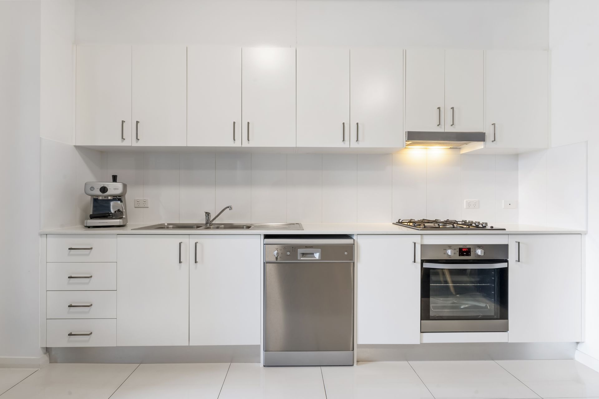 • Modern gas kitchen with stone benchtops, dishwasher, stainless-steel appliances and plenty of storage space