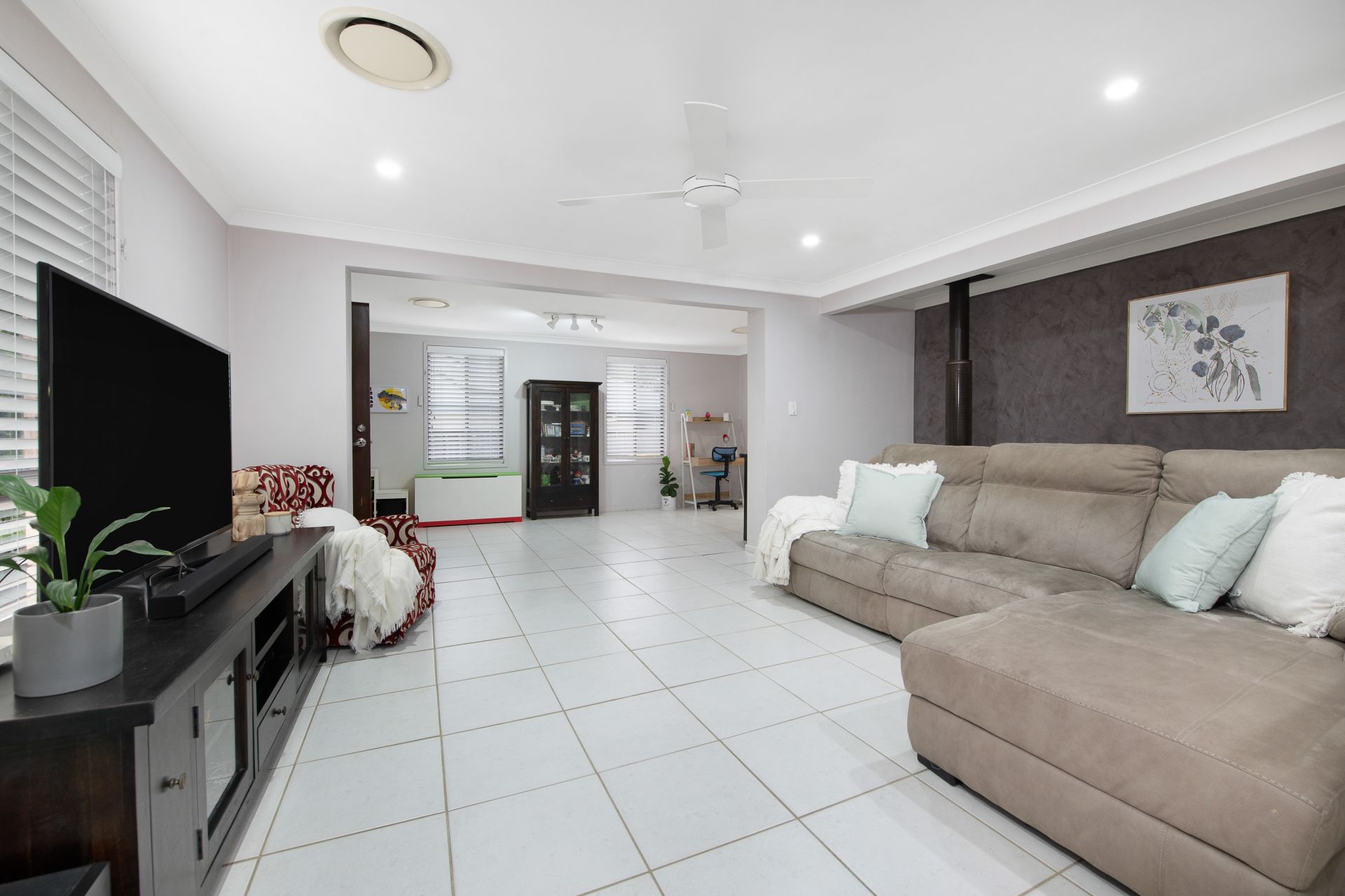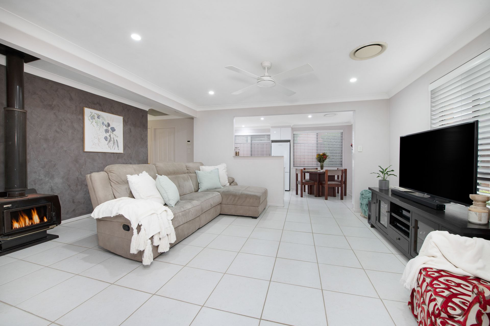 • Additional features: ducted air-conditioning, linen closet, tiled and a combustion fire place