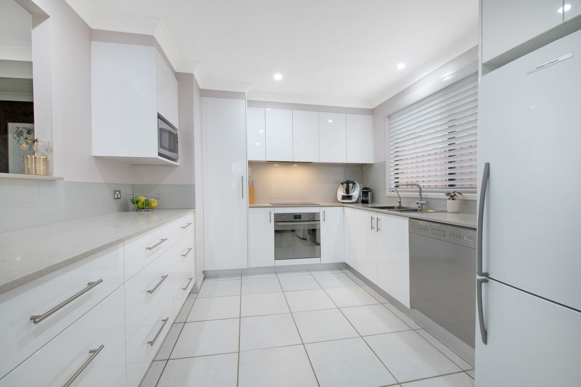 • Modern kitchen with stainless-steel appliances, ample storage and plentiful preparation space