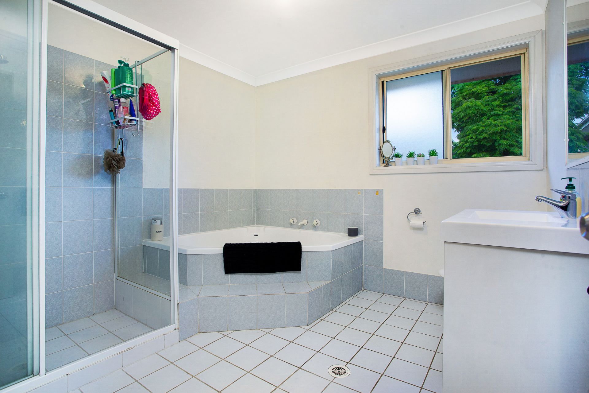 • Spacious, light-filled family bathroom with separate shower and spa-bath