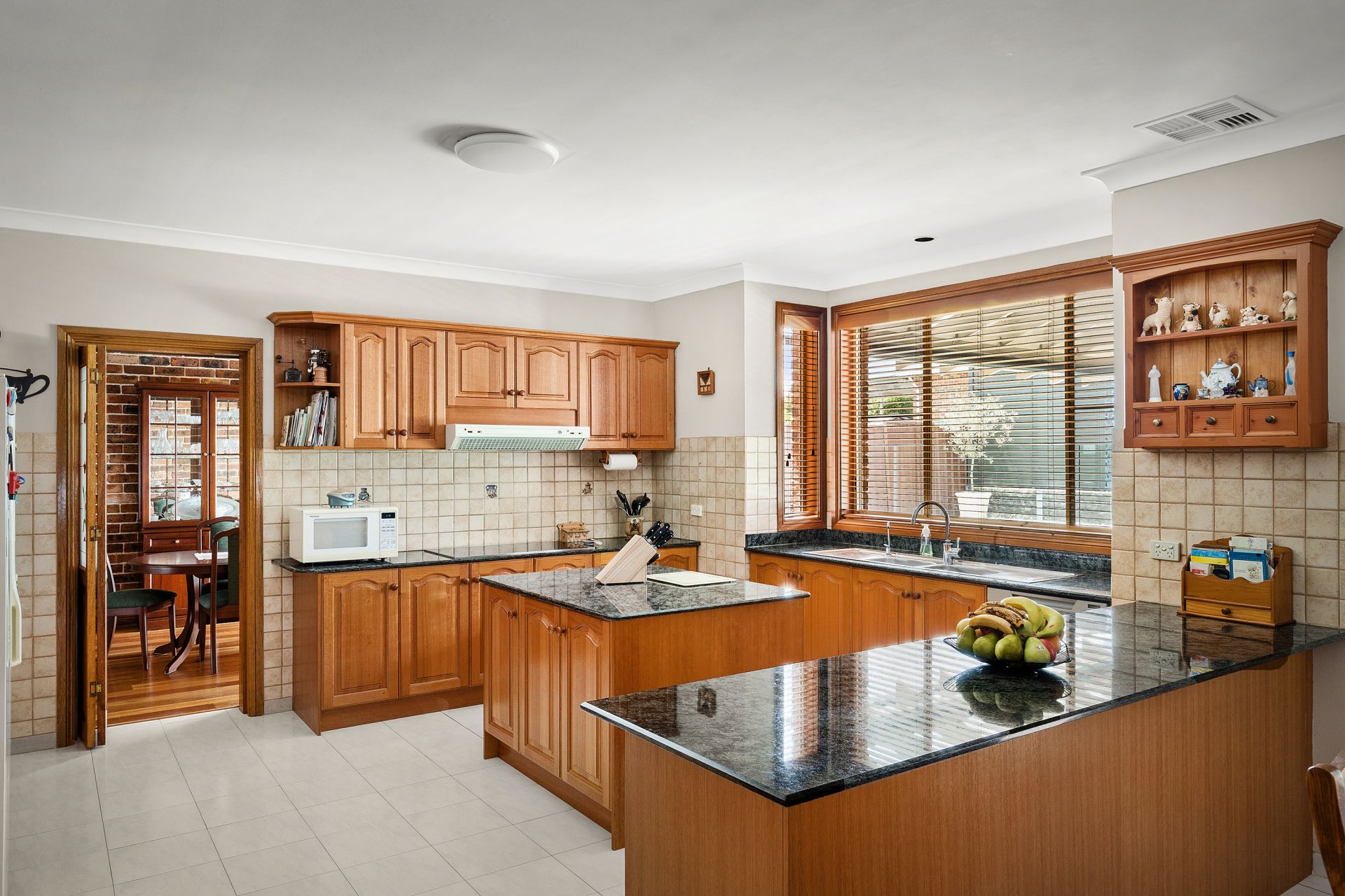 • Roomy, centrally positioned and modern kitchen featuring stone benchtops, island bench, breakfast bar, pantry, extensive preparation space and abundant storage