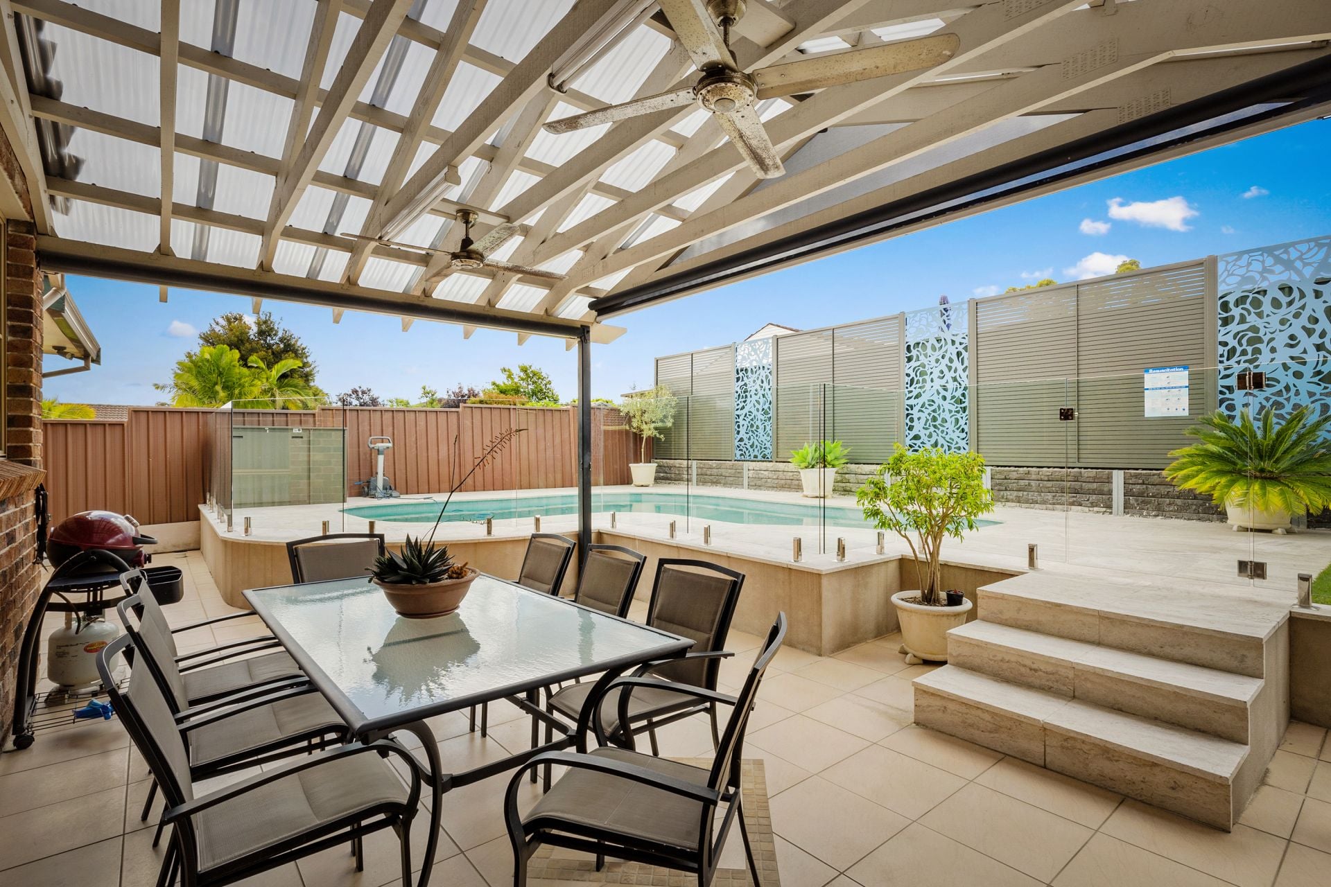 • Sparkling, neatly paved and fenced pool area incorporated into outdoor entertaining space