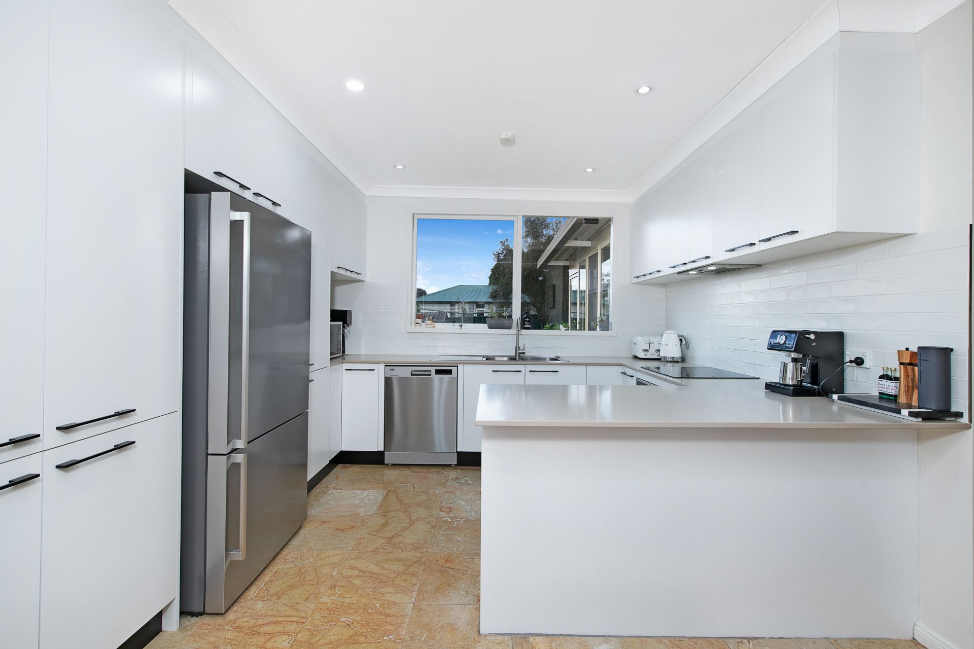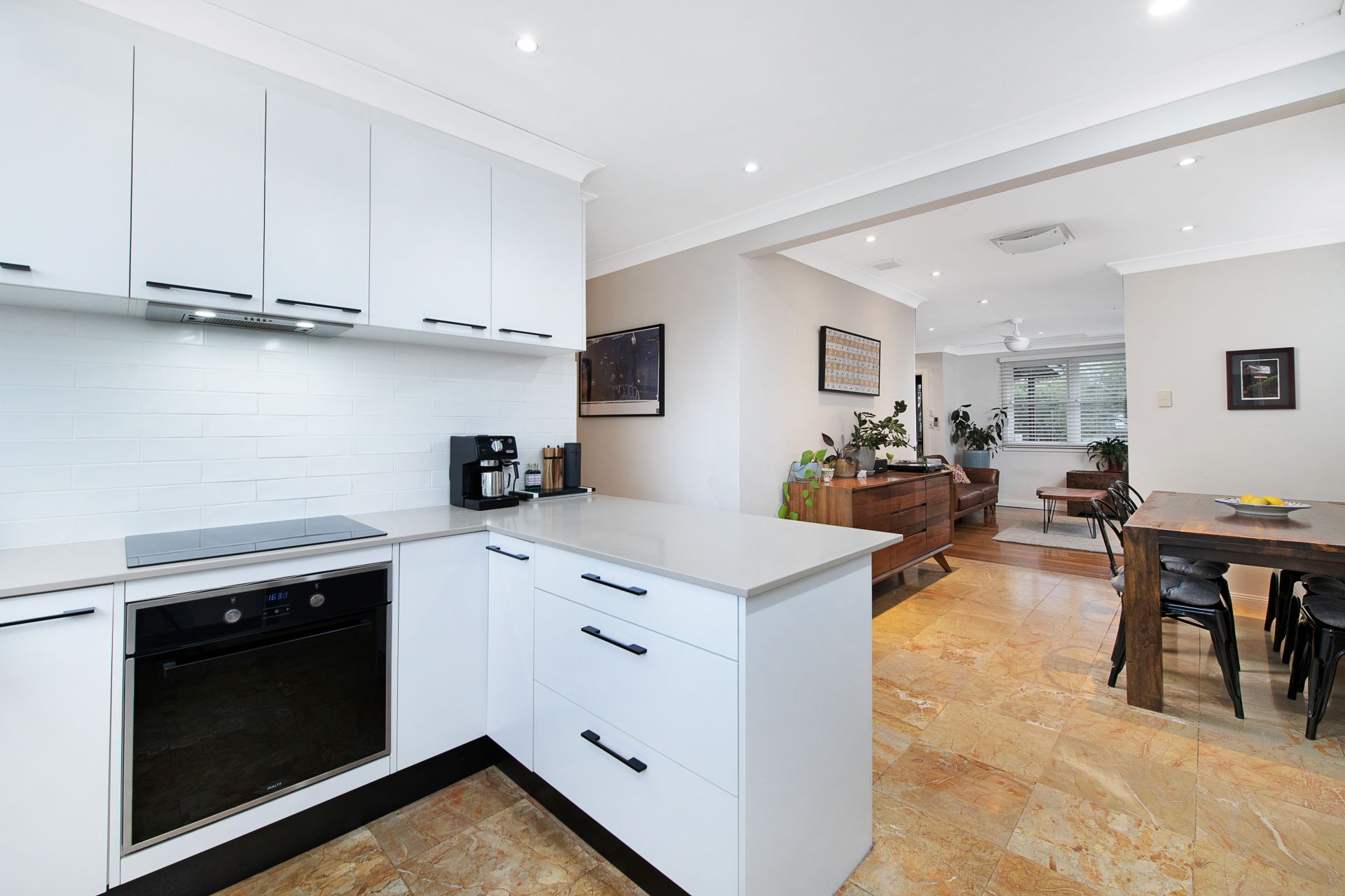• Modernised kitchen with breakfast bar, stone benchtops, pantry, subway tile splashbacks and plentiful bench and storage space