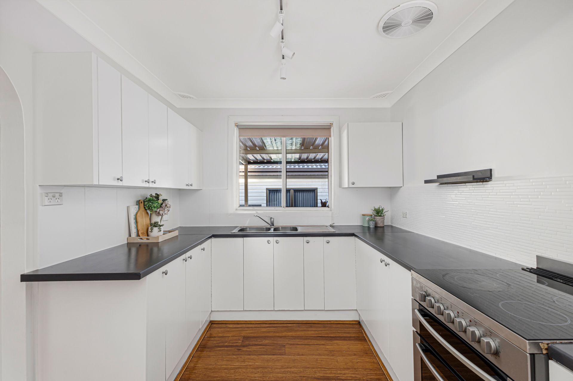 • Updated galley-style kitchen with stainless steel appliances, tiled splashbacks and plentiful preparation and storage space
