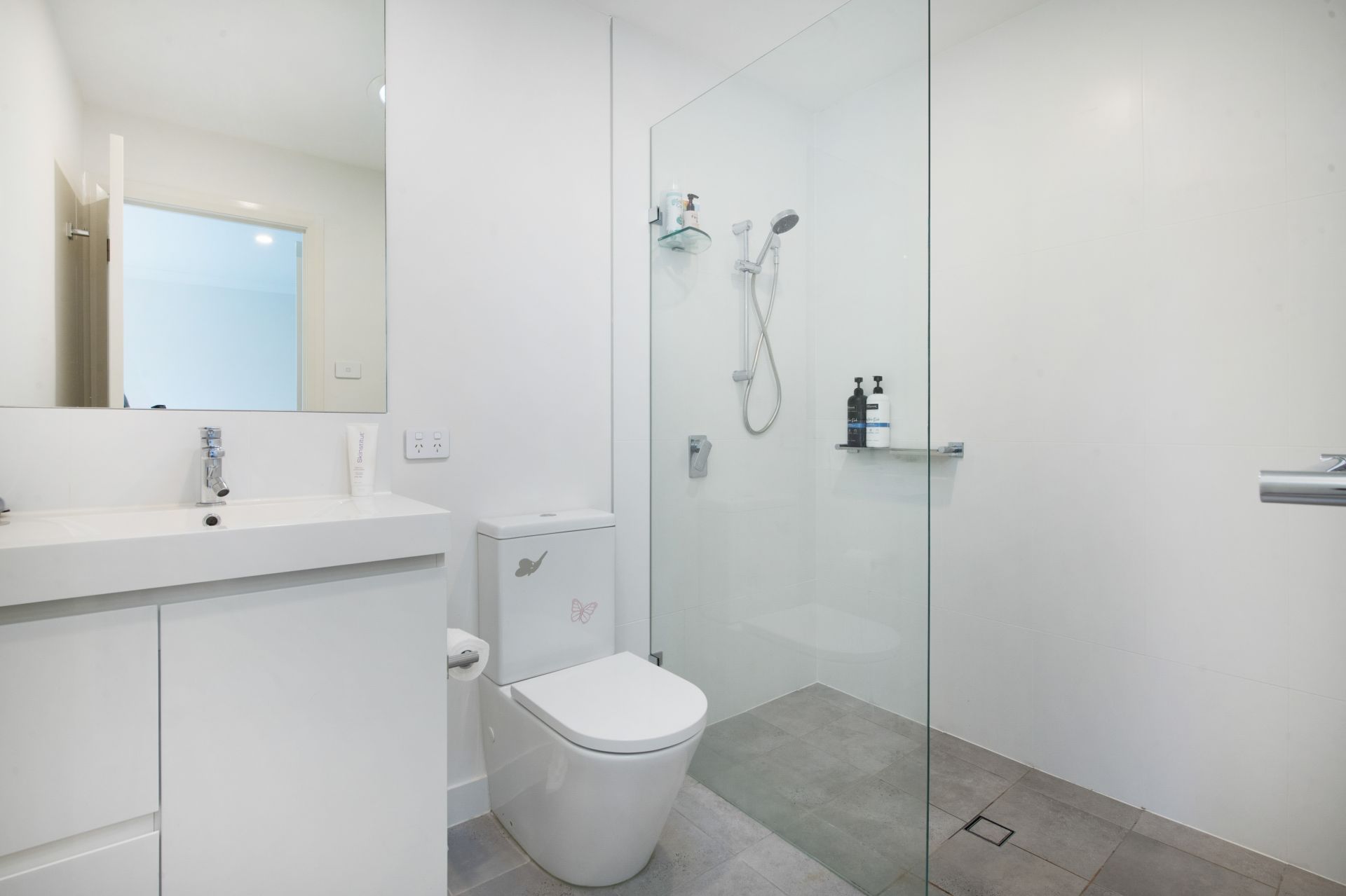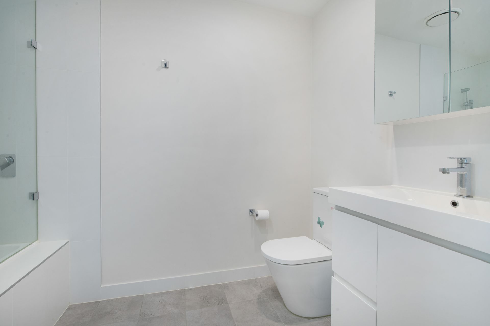 -Modern family bathroom with combined bath and shower, plus downstairs powder room – three toilets in total