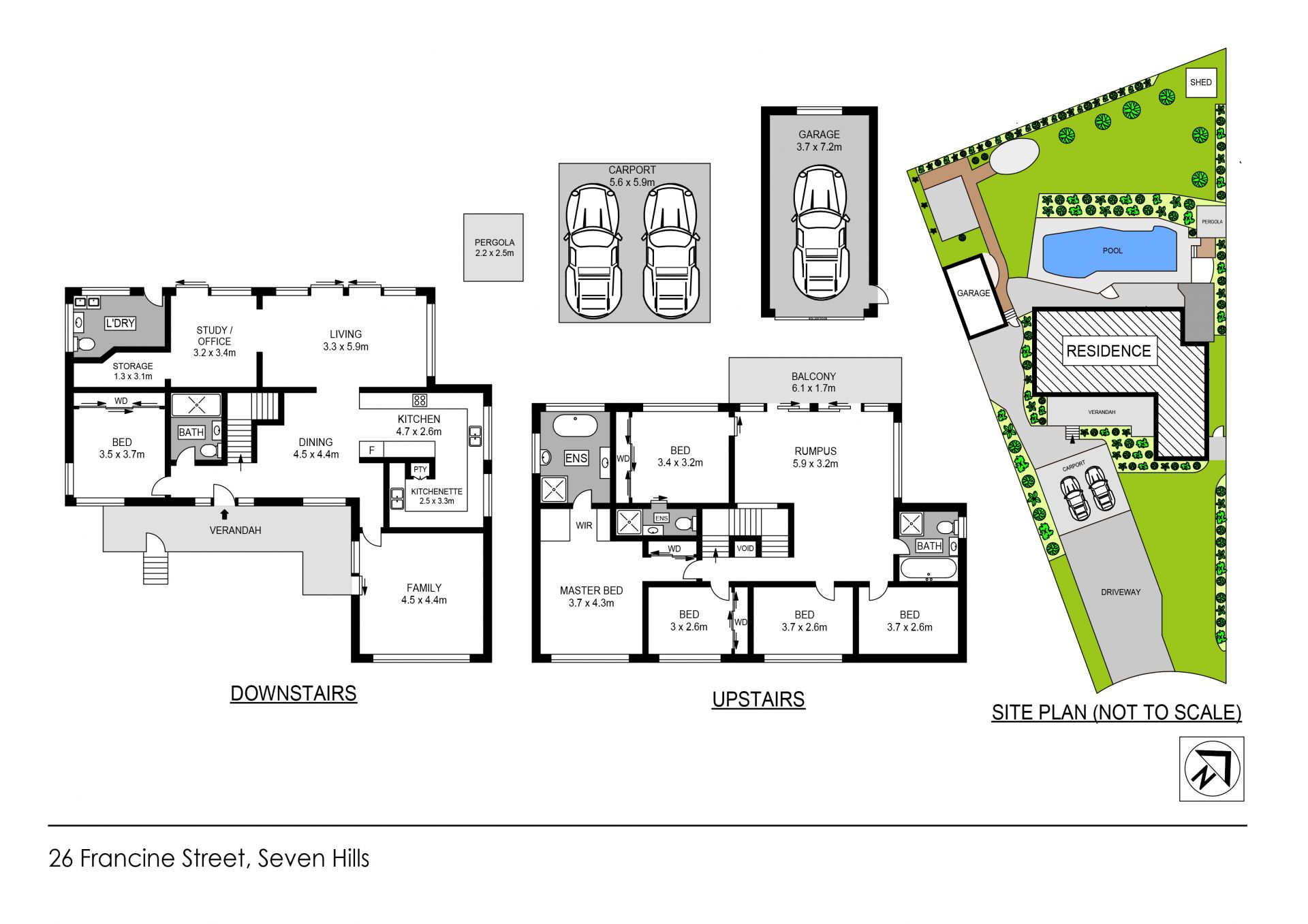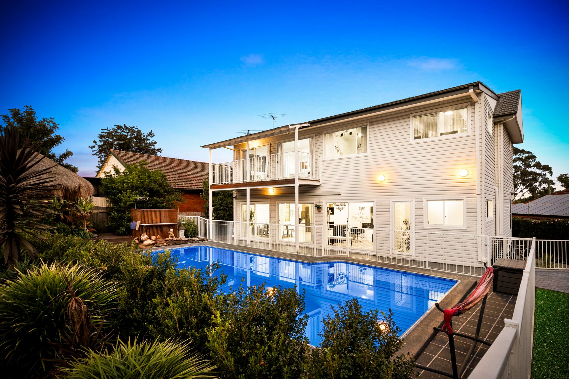Radiant with natural light, tastefully adorned with elegant appointments, it presents magnificent, spacious, versatile family living and endless possibilities as well! For a start, the residence sits grandly on a huge, lush, established, easement-free parcel of premium Seven Hills real estate, with endless grassy expanses for additions, or for the kids and pets to run free in. Evening indoor/outdoor soirees are easily hosted by the spacious upstairs rumpus opening out to your extensive balcony. The summers will be memorable in your cabana-style pergola and large in-ground lap pool.