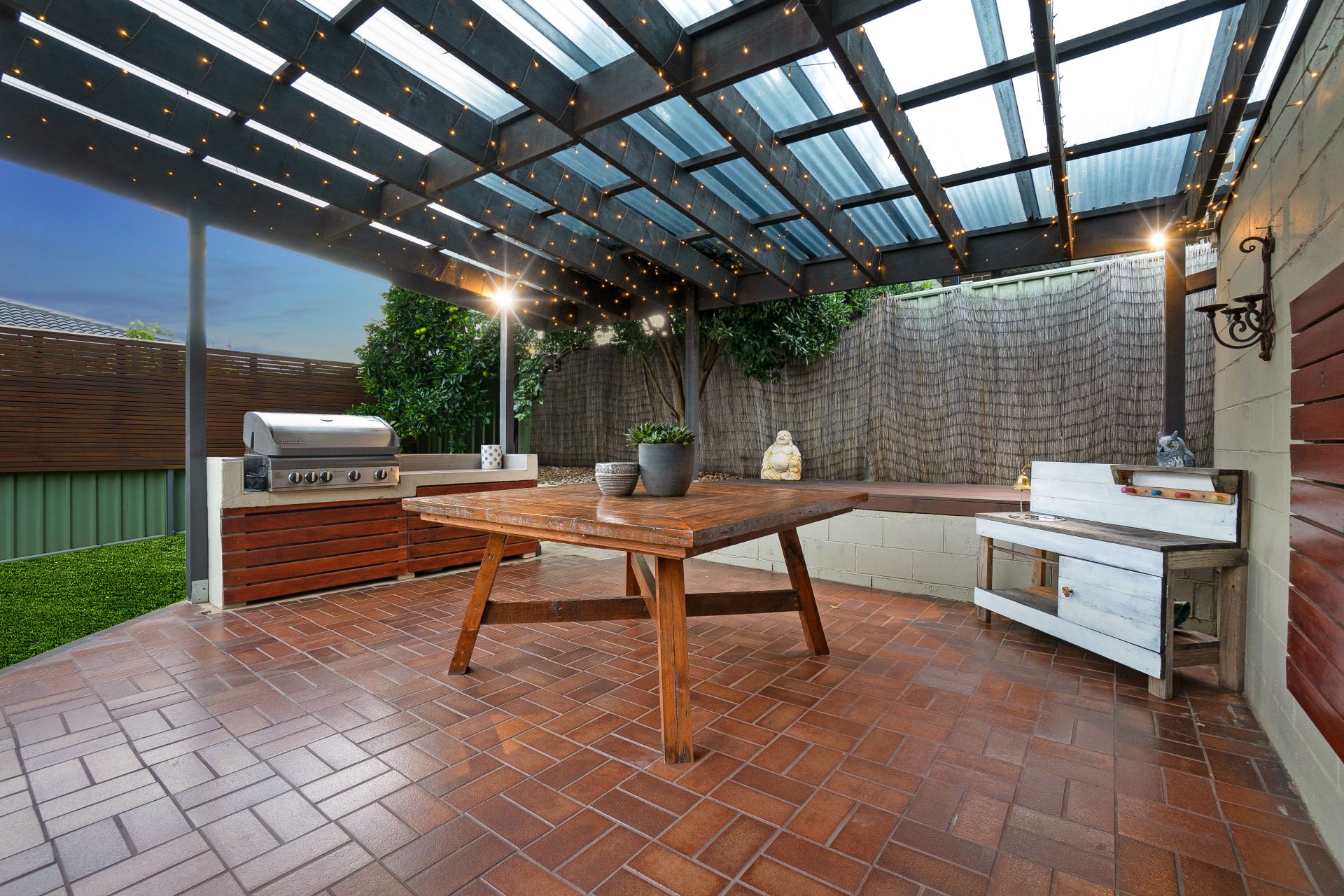 • Paved, covered alfresco entertaining and barbecue area