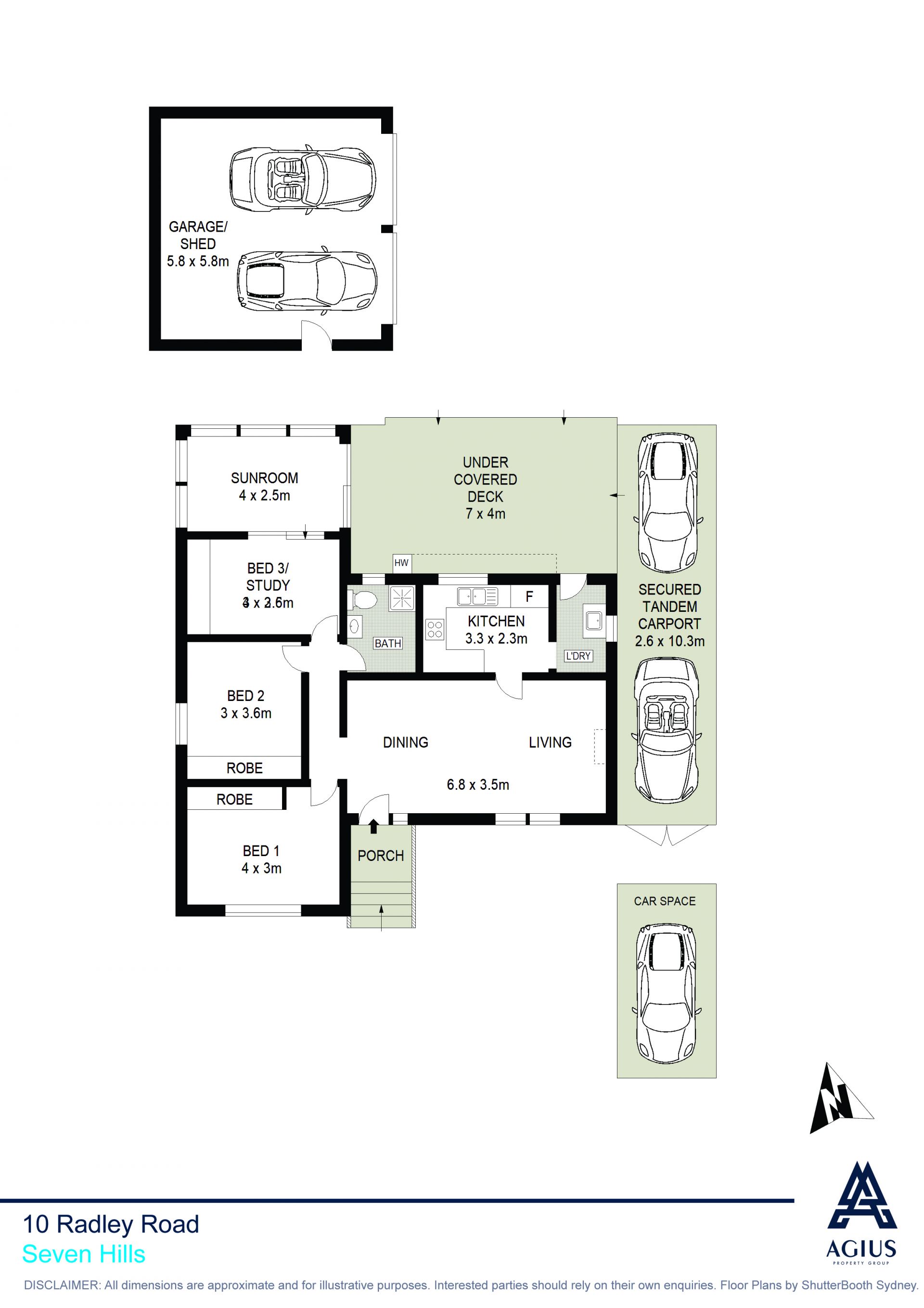 • Double garage with tons of workshop room, plus double tandem carport and a single car space