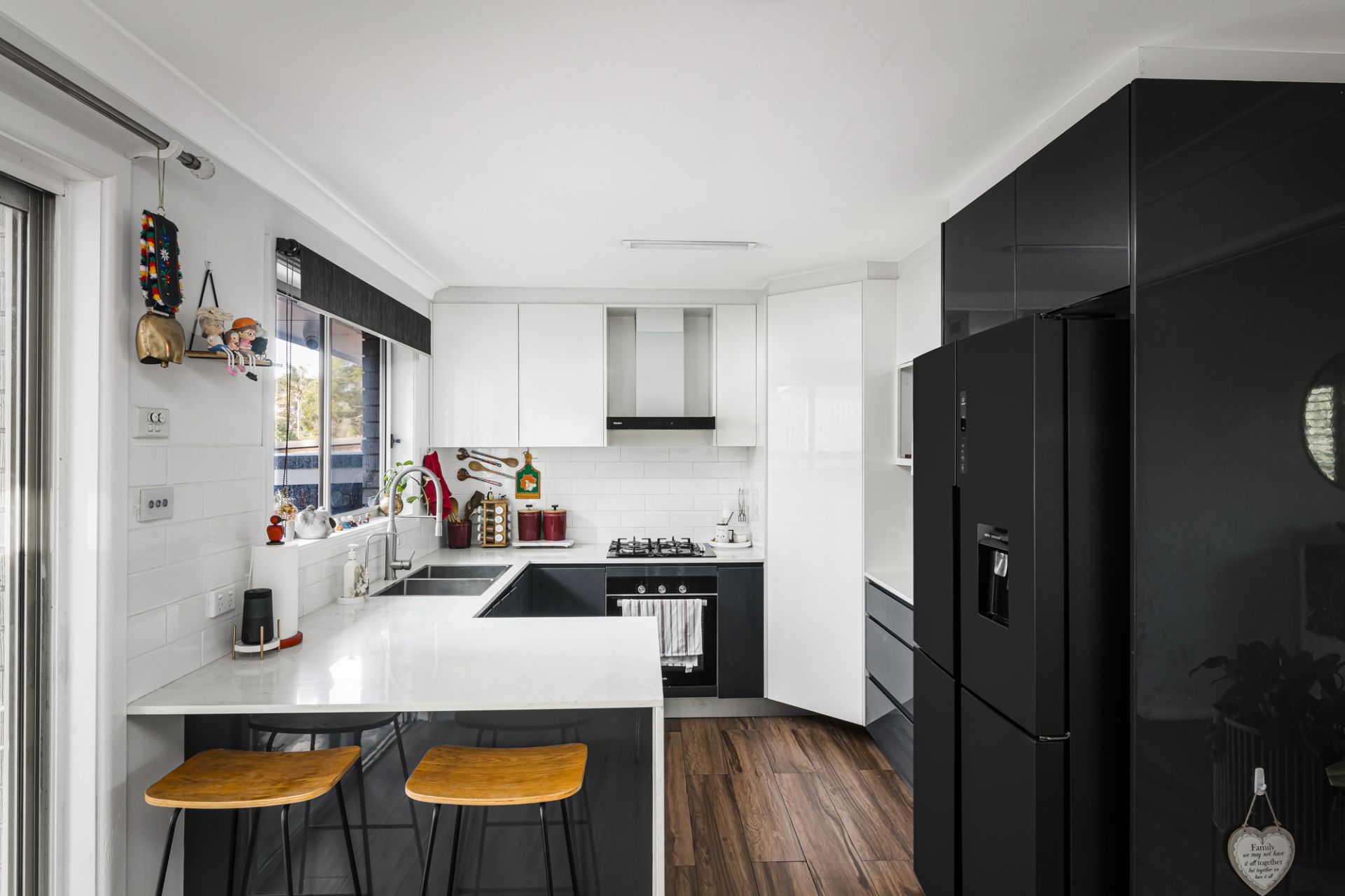 • Roomy kitchen with breakfast bar, pantry, subway tiled splashback, stainless-steel appliances and plenty of preparation and storage space