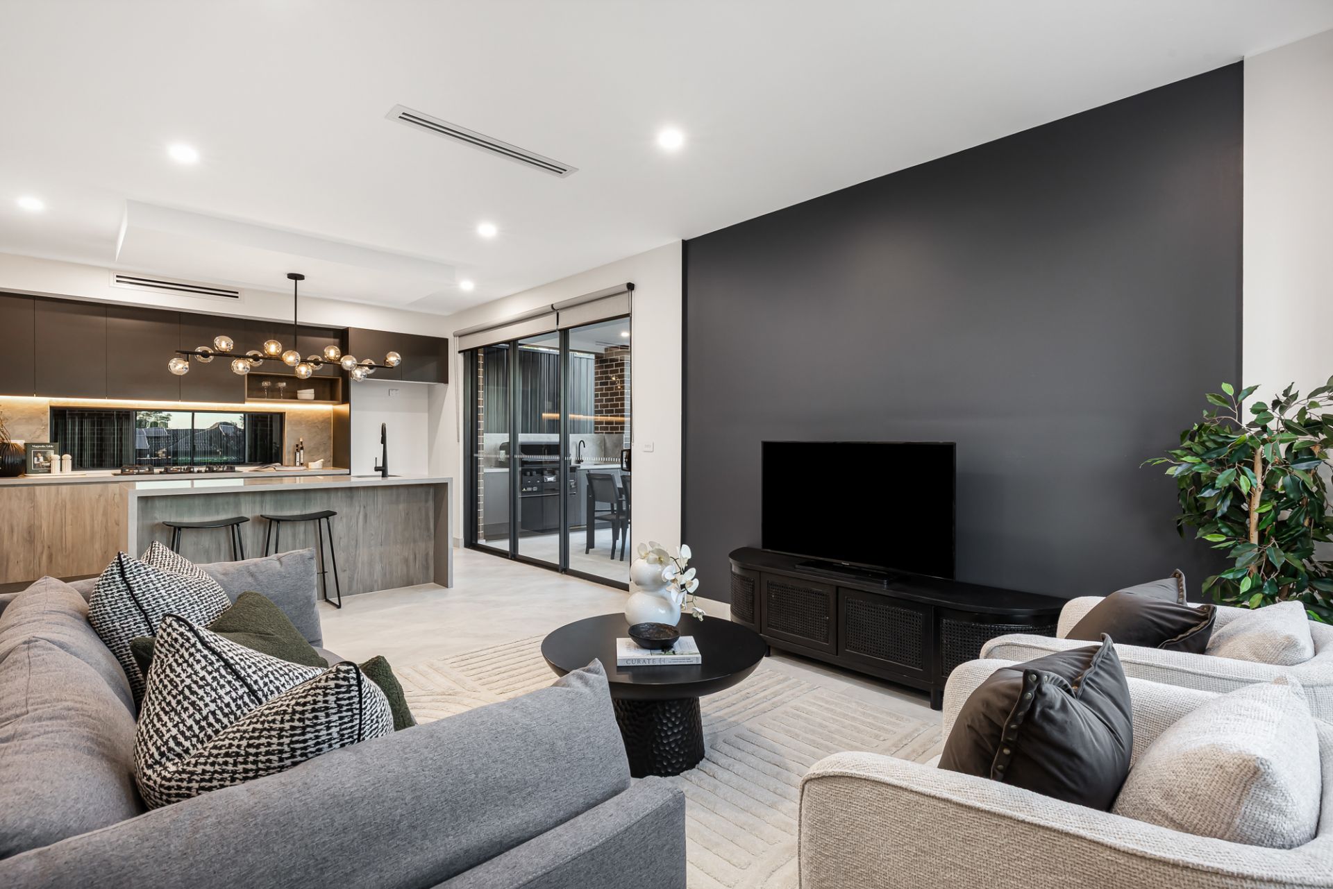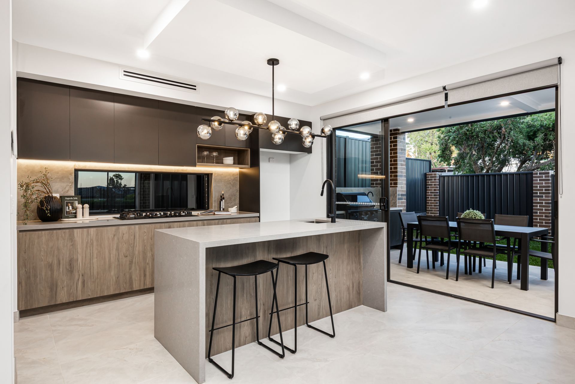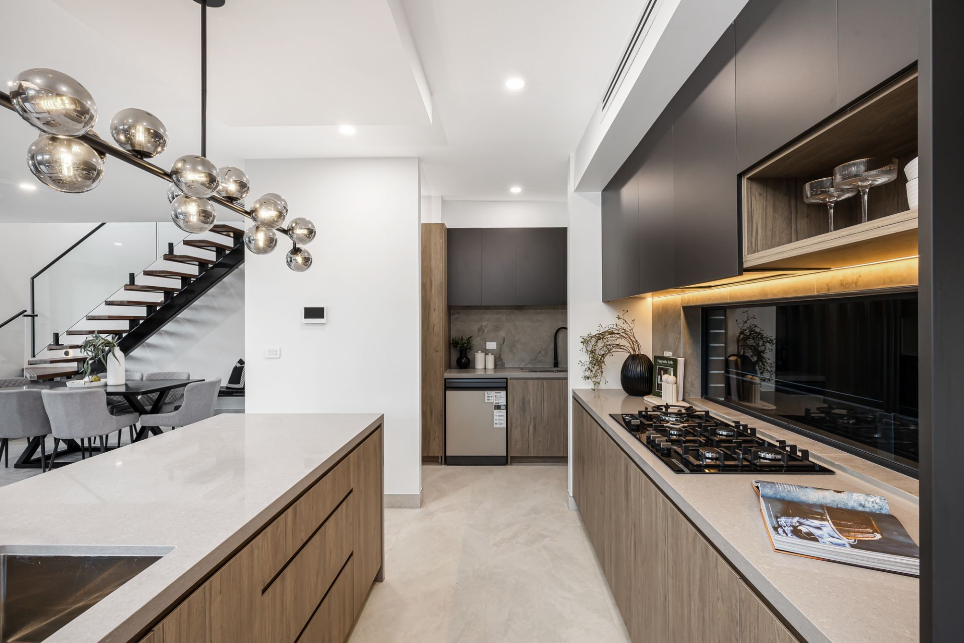 • Sparkling contemporary kitchen with breakfast bar, pantry, stainless-steel appliances, soft-close drawers and abundant preparation and storage space