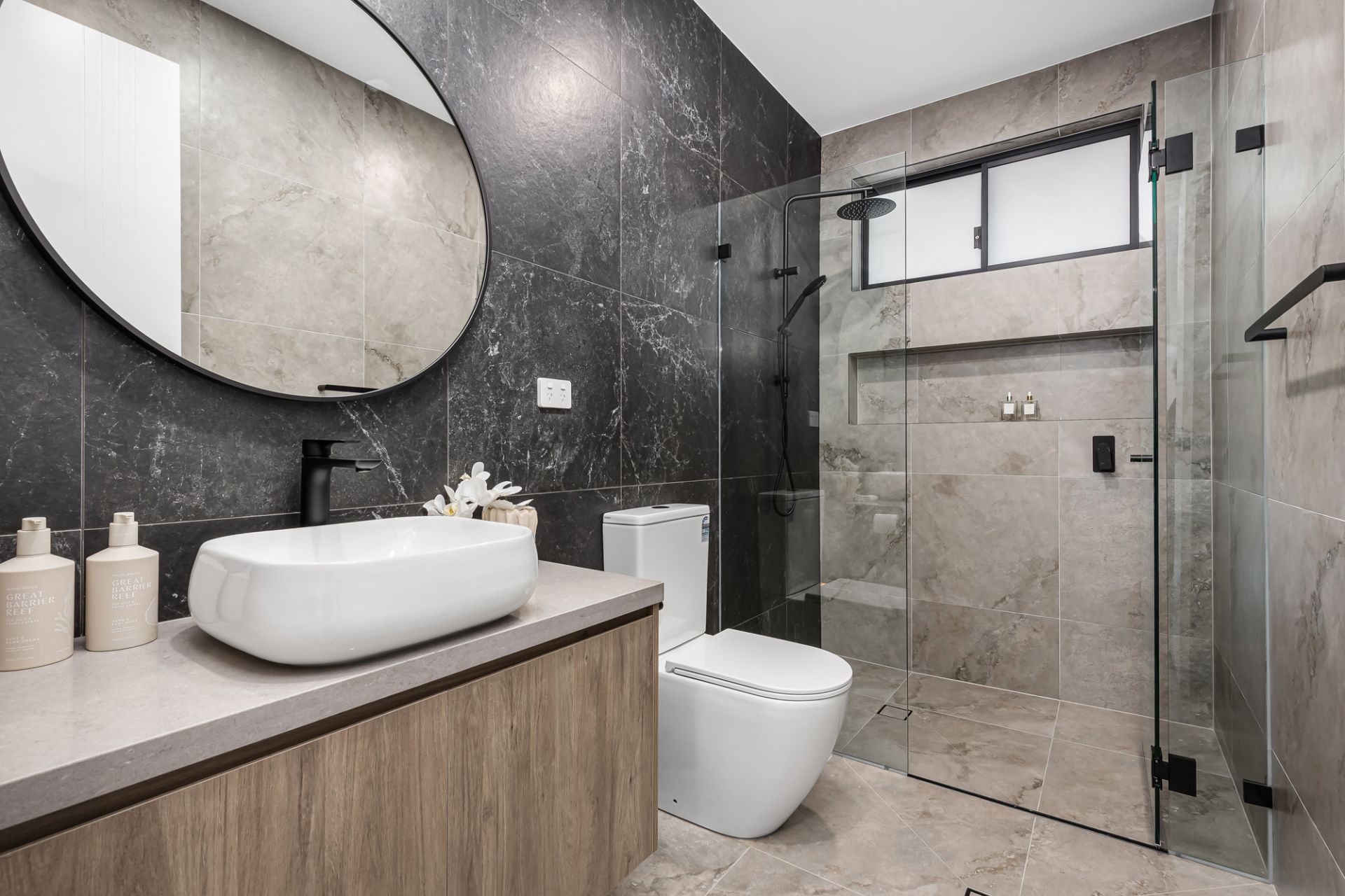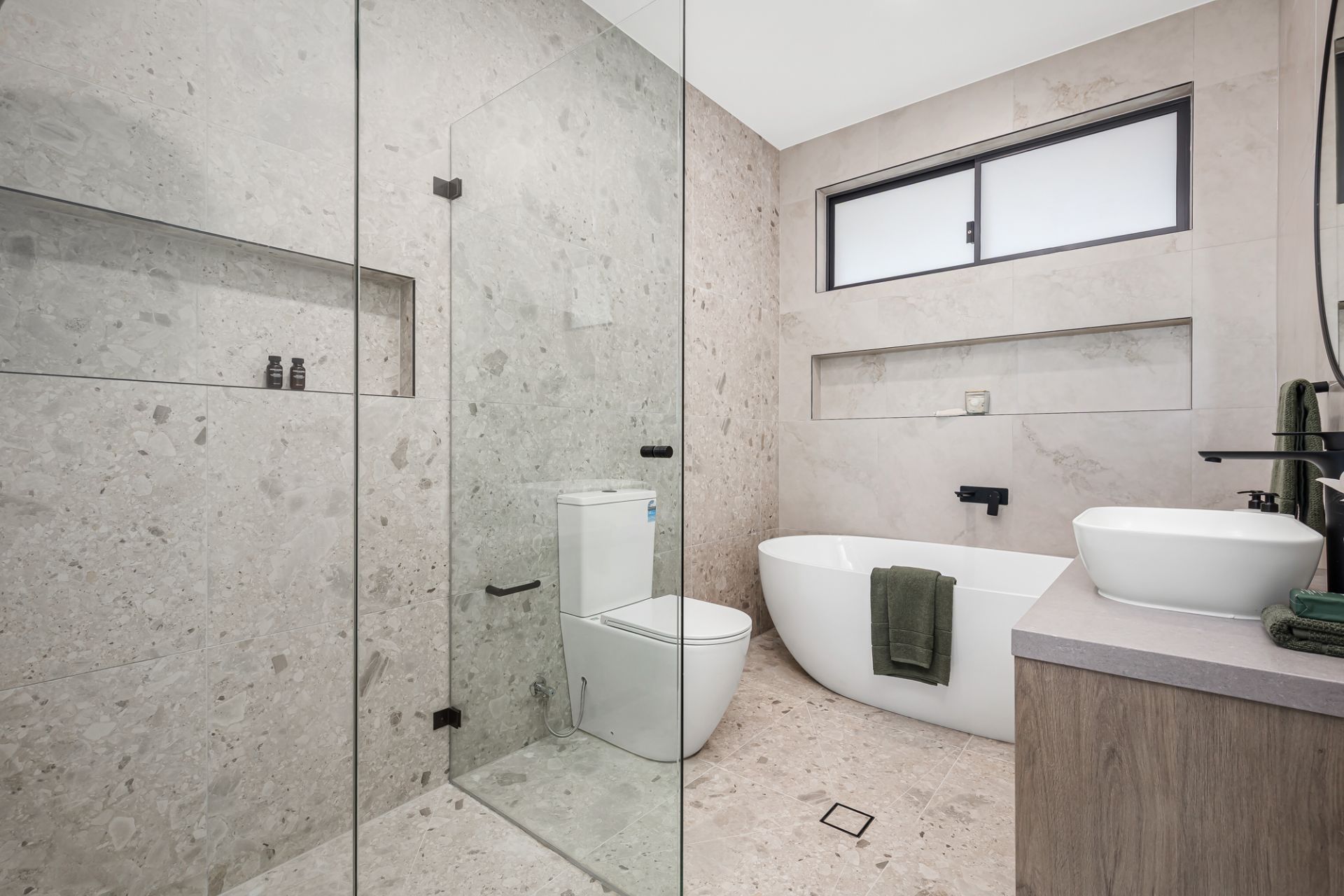 • Elegant family bathroom, separate deep bath and frameless shower, plus downstairs powder room