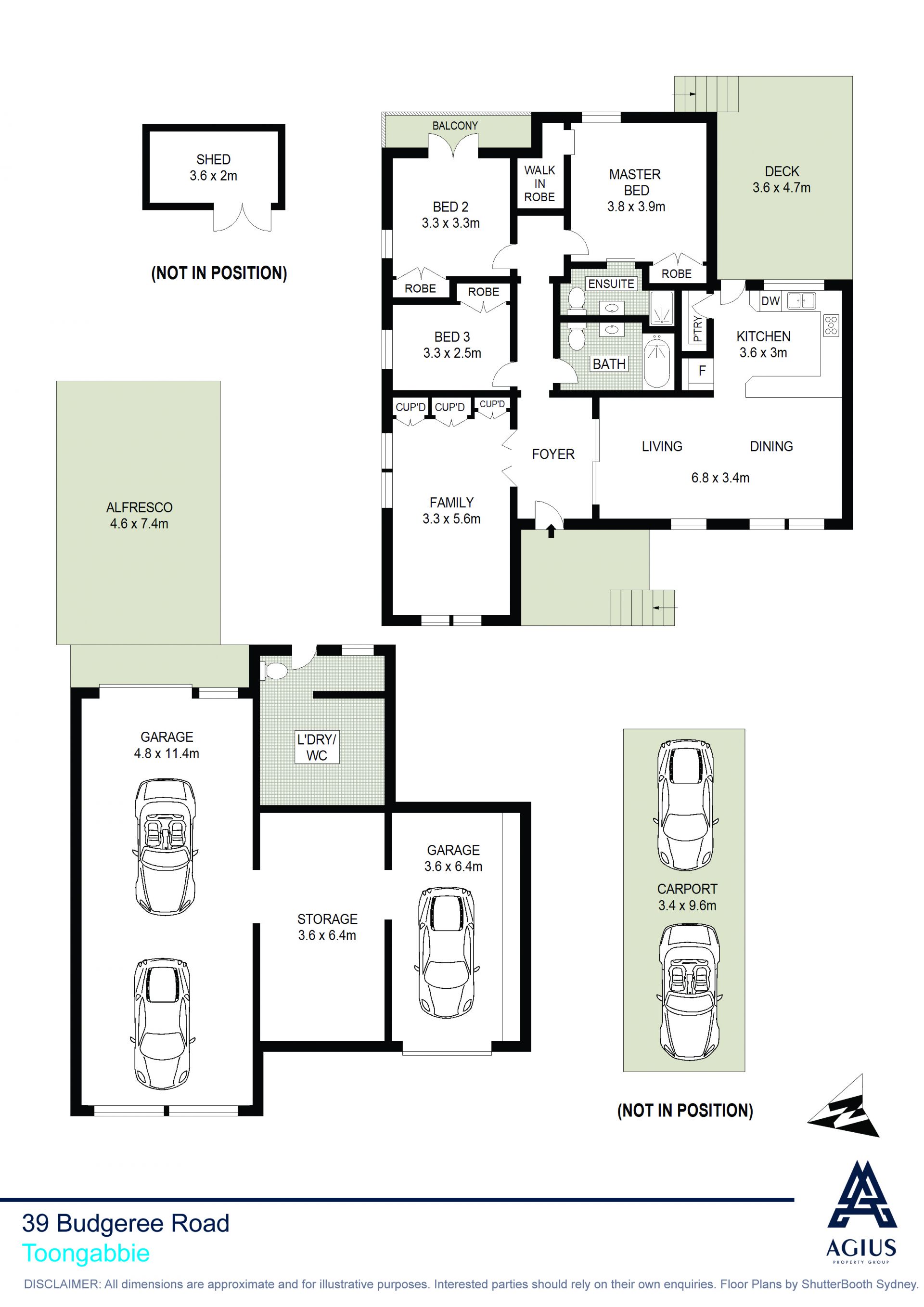 • Additional features: bedroom and living area ceiling fans, split-system air-conditioning, garden shed