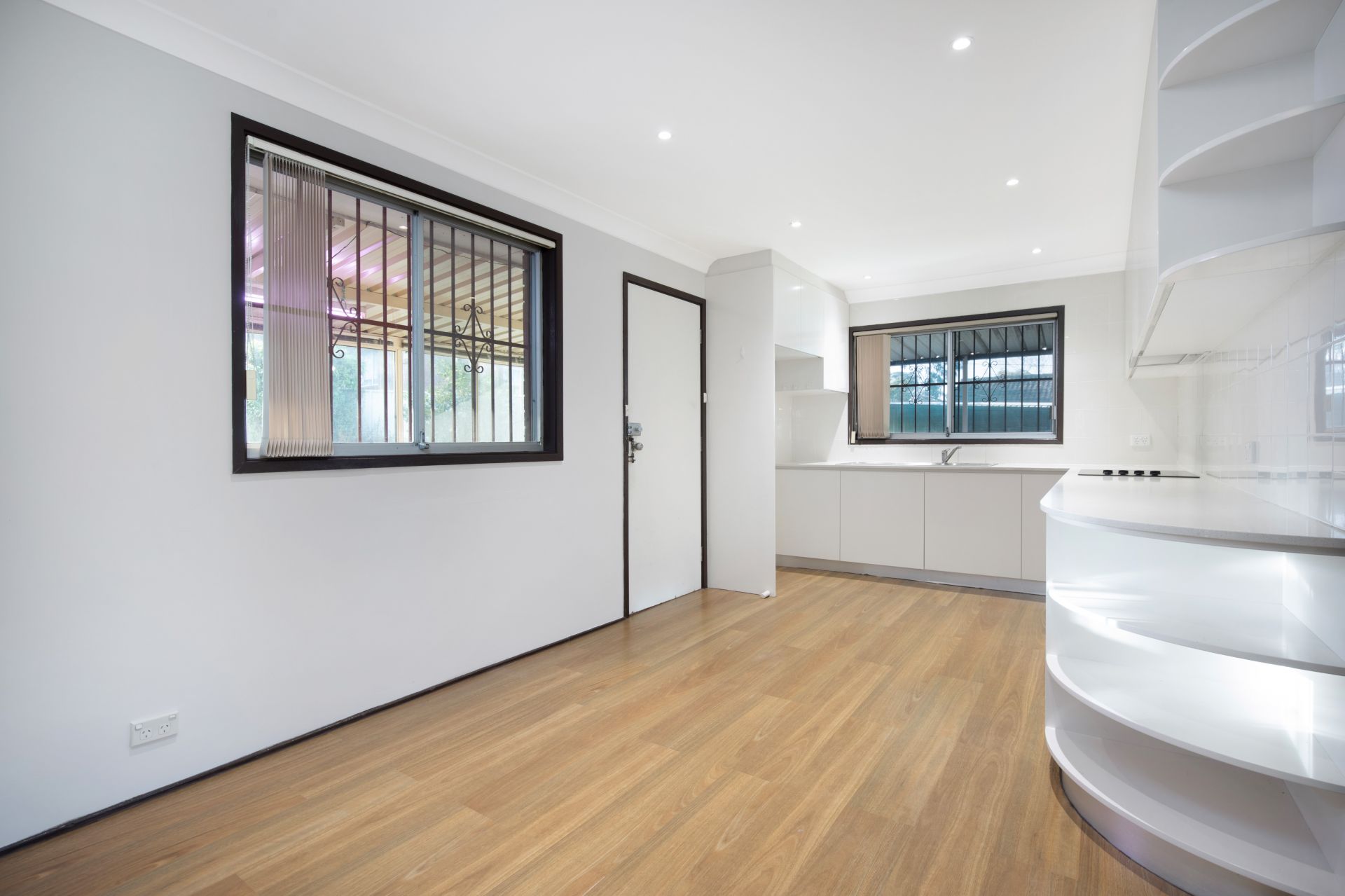 Covered and paved alfresco dining/entertaining area with barbecue built in